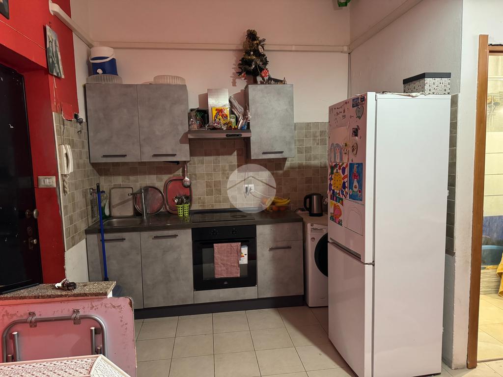 L'appartamento si presenta in stato interno da ristrutturare. Con pavimentazione in grés porcellanato di colore chiaro in zona giorno, e con differente trama e colore in camera da letto. Infissi in doppio vetro/PVC e porta blindata.