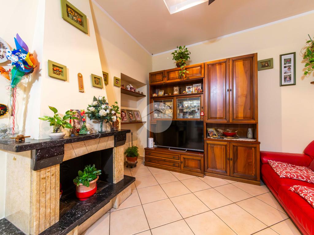Ingresso diretto in ampia zona soggiorno, finestrata e con medesimo affaccio dell’ingresso, e dotata di camino, comunicante con la cucina a vista, a sua volta doppiamente finestrata e con affaccio tranquillo sulla Via Terni. Proseguendo attraverso una comoda porta scorrevole, accediamo poi alla zona notte, composta da un disimpegno, due camere da letto entrambe finestrate e con medesimo affaccio sulla Via Francesco Rismondo, ed un bagno anch’esso finestrato e dotato di vasca.