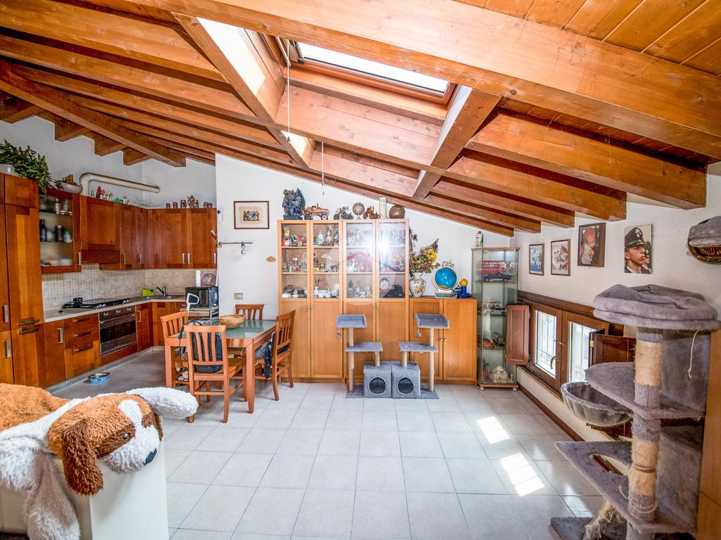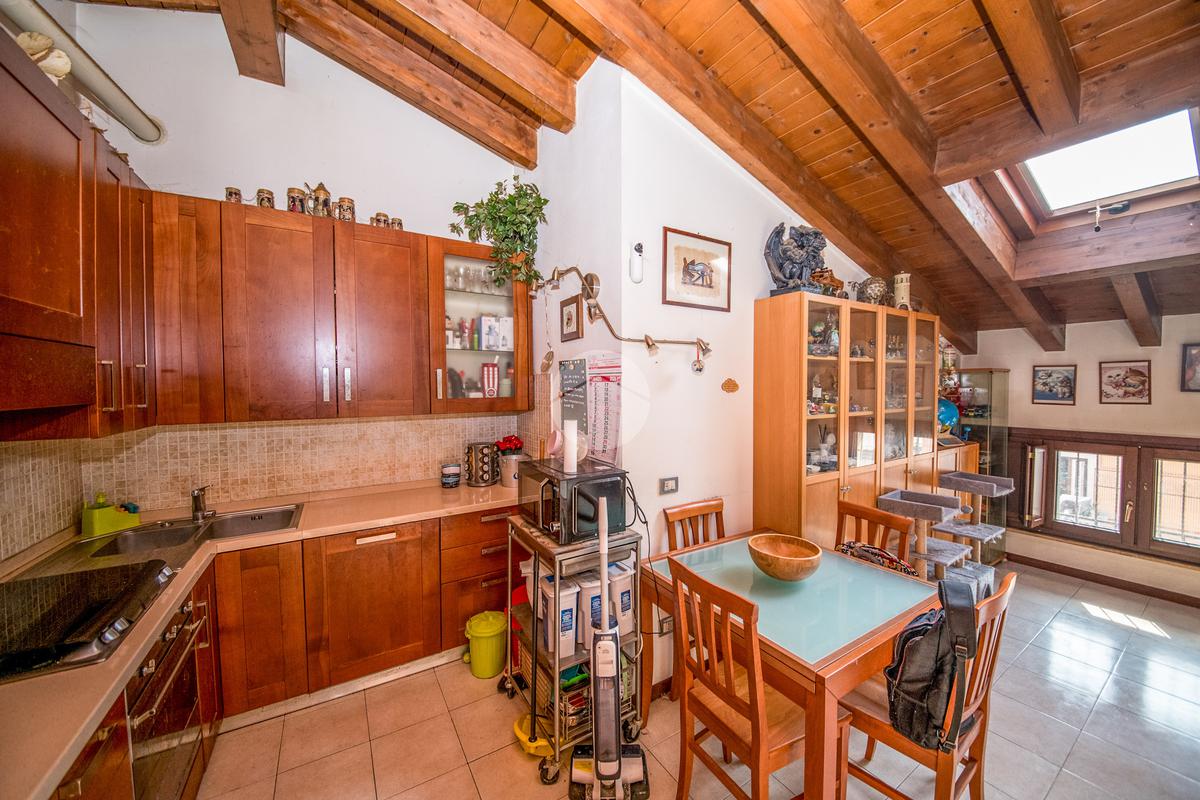 La cucina, a vista sul soggiorno, completa la zona giorno con una soluzione moderna e open space, perfettamente integrata nell’ambiente principale.