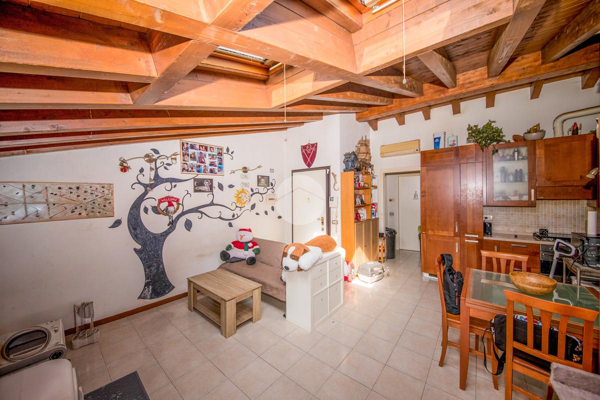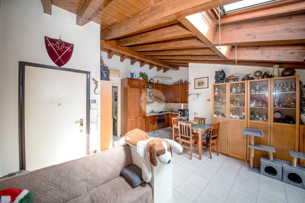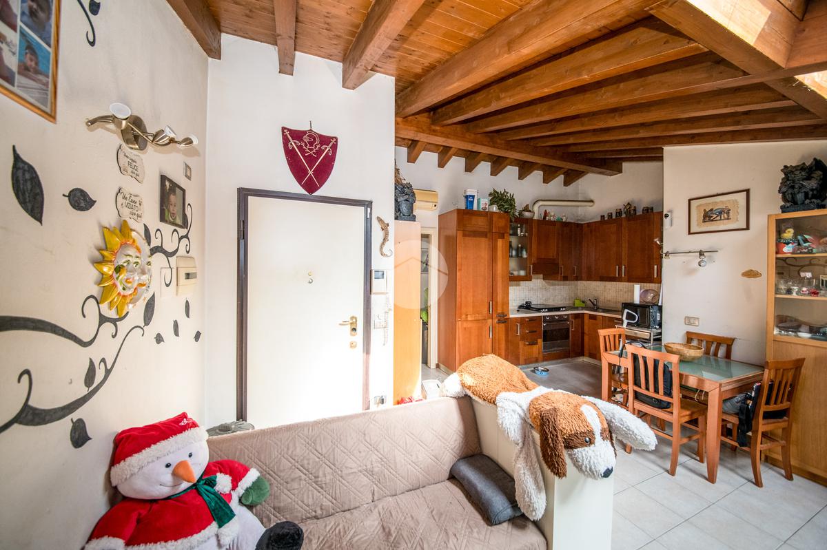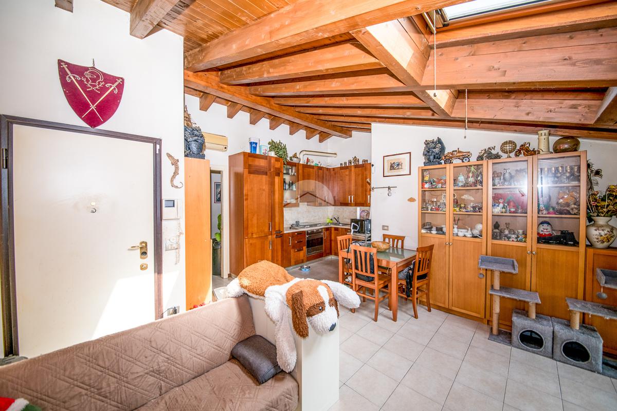 Ingresso che introduce direttamente alla luminosa zona giorno: il soggiorno e la cucina a vista formano un ambiente open space ampio e funzionale, ideale per la vita quotidiana.