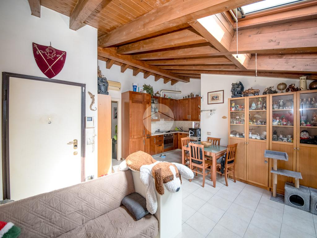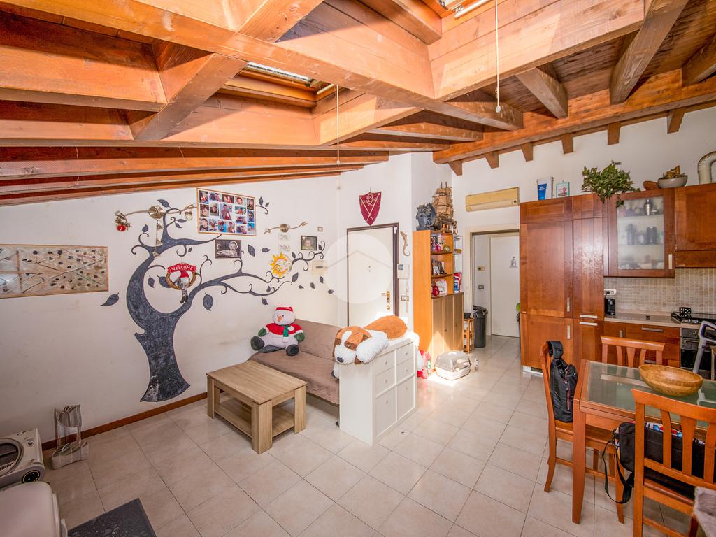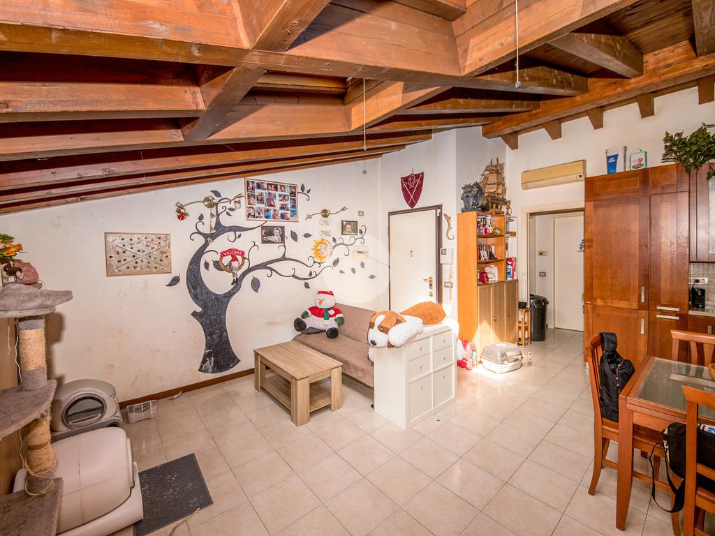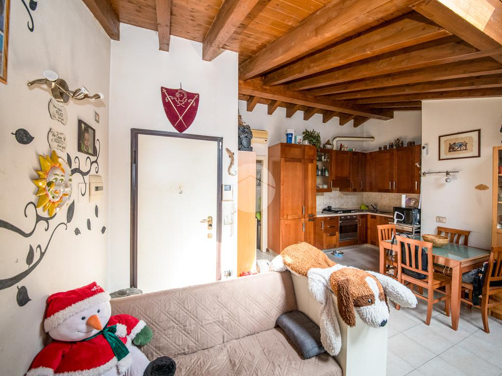 Ingresso che introduce direttamente alla luminosa zona giorno: il soggiorno e la cucina a vista formano un ambiente open space ampio e funzionale, ideale per la vita quotidiana.